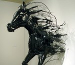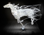 Japanese-born artist Sayaka Ganz creates sculptures out of discarded plastics found in thrift stores, converting these unwanted materials into graceful imitations of natural beauty. For her Running series, Ganz created life-like horses in mid-gallop. “Japanese Shinto beliefs are such that all objects and organisms have spirits, and I was taught in kindergarten that objects that are discarded before their time weep at night inside the trash bin. This became a vivid image in my mind,” Ganz explained her interest in recycled materials. She collects multitudes of plastic objects, organizing them in dozens of color-sorted bins in her basement. She then decides what to make when she has enough of one color, referencing photographs of her chosen species to convey its distinct movements and characteristics. Take a look at some photos of her work below as well as a video of her process, images courtesy of Sayaka Ganz.