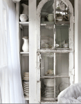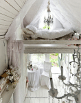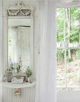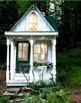 With only $3000 on renovation and furniture, Sandra Foster transformed a Catskills hunting cabin into this romantic 9-by-14-foot Victorian cottage. She did all the carpentry work herself, using vintage columns, flooring and wavy glass windows. via nytimes