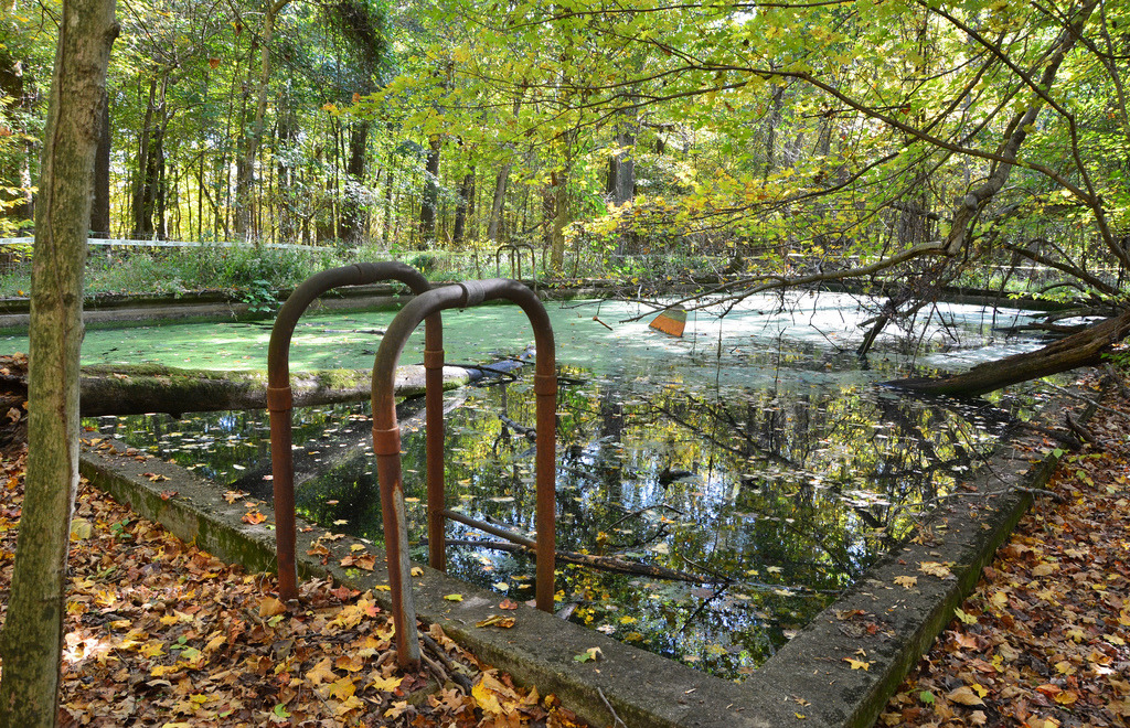 The abandoned swimming pool is about all that’s left of the old Rose Island Amusement Park that was destroyed back in the 1930’s when the Ohio River flooded. After all these years, it still holds water (by twhrider)